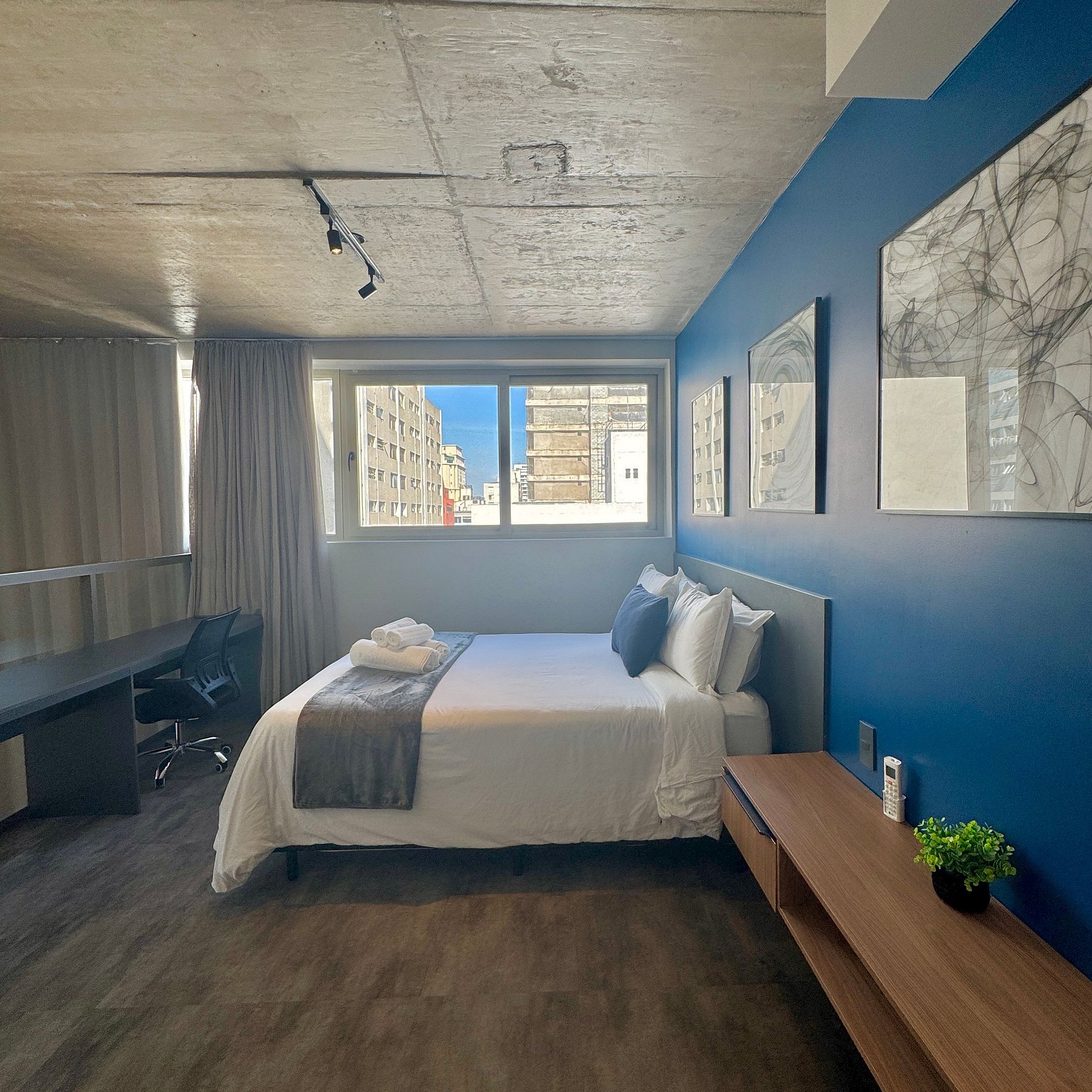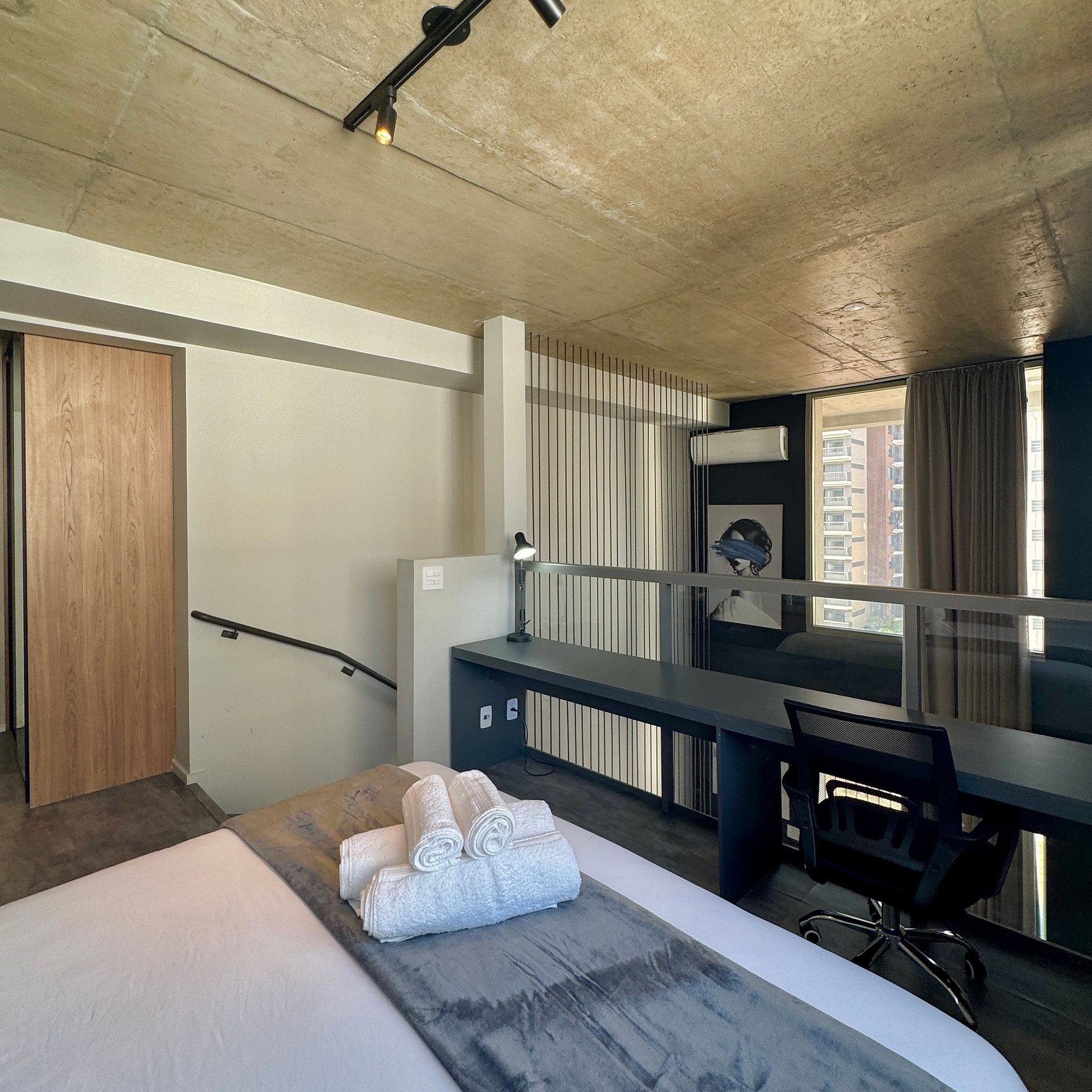 Aqui cada detalhe foi pensado para tornar sua estadia única: cozinha funcional, quarto com cama queen além de um sofá cama amplo na sala, blackout, wi-fi, ar-condicionado, vaga de garagem (com manobrista), TV Smart e um espaço para home office. O grande destaque é a varanda ampla e uma vista marcante para o bairro Jardins, perfeita para trabalhar, relaxar, ler um livro ou simplesmente apreciar momentos tranquilos.