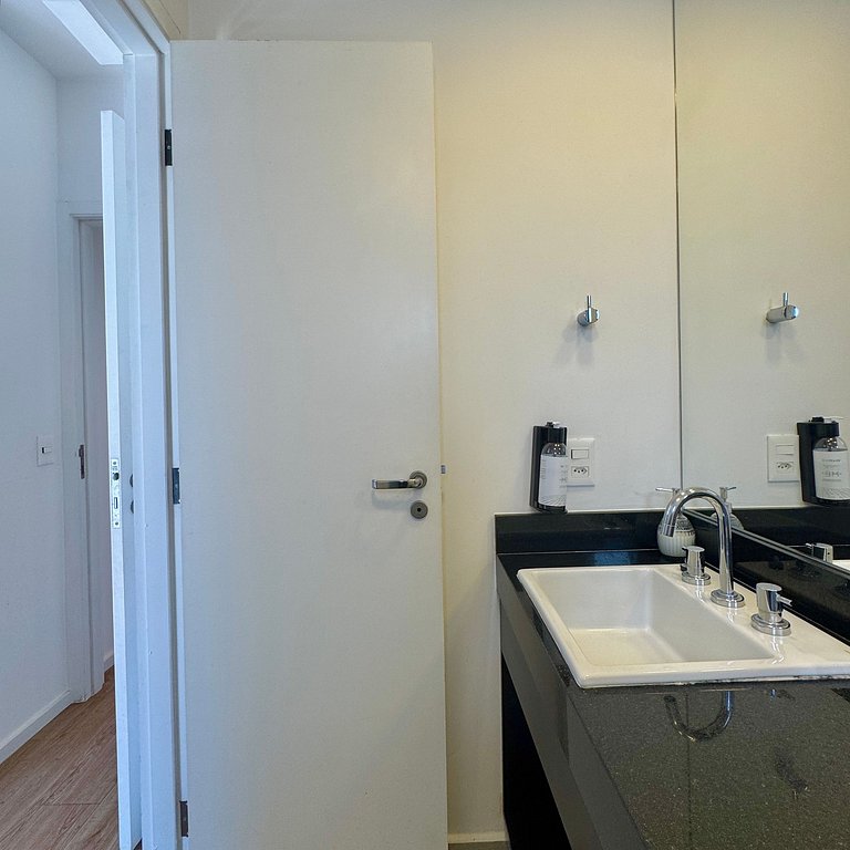 - CHECK-IN E CHECK-OUT: o check-in é feito de forma prática ao apresentar-se na recepção do prédio a partir das 15:00 horas. O check-out deverá ocorrer até ao horário final das 11:00 horas. Antes de realizar o check-out pedimos que revise os aparelhos de TV e AC se estiverem desligados, janelas e portas fechadas, luzes apagadas e colocar o lixo com descarte nas lixeiras do condomínio.