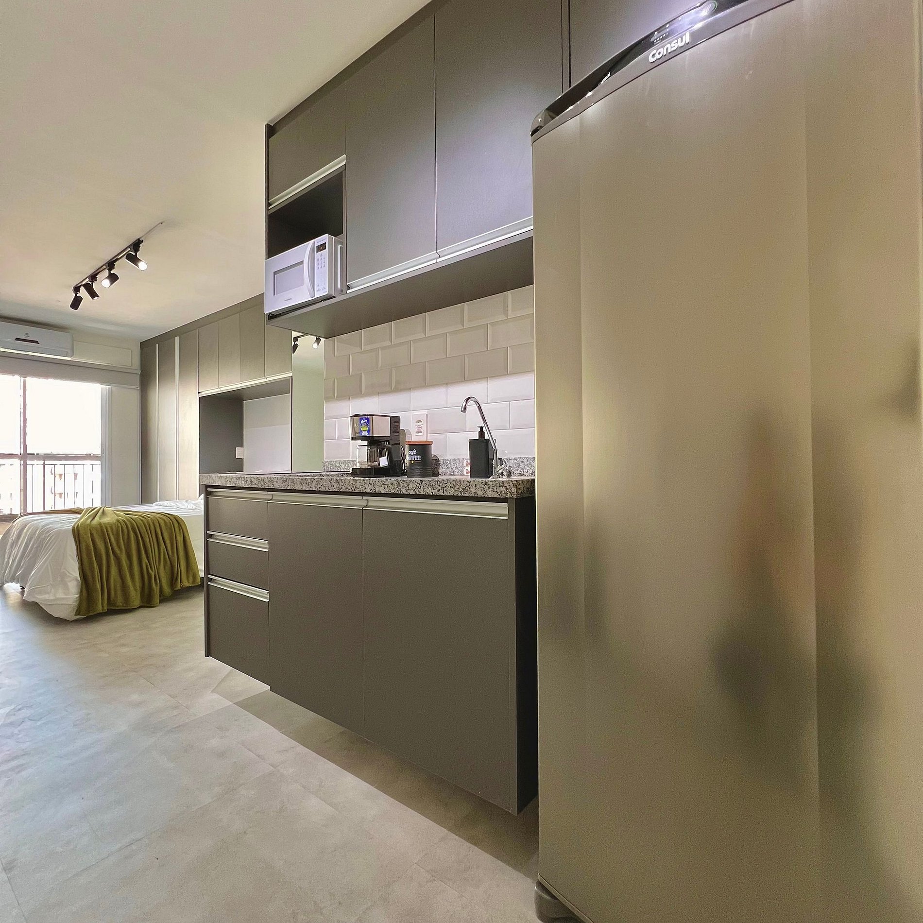 Aqui cada detalhe foi pensado para tornar sua estadia única: cozinha completa com fogão, micro-ondas, cafeteira, geladeira, quarto com cama queen, blackout, enxoval completo, travesseiros e mantas/edredom para aqueles dias mais frios, sacada, wi-fi, ar-condicionado, TV Smart e um espaço para home office. O grande destaque é a sacada fechada que garante iluminação natural e controle de ruído, perfeita para trabalhar, relaxar, ler um livro ou simplesmente apreciar o por do sol.