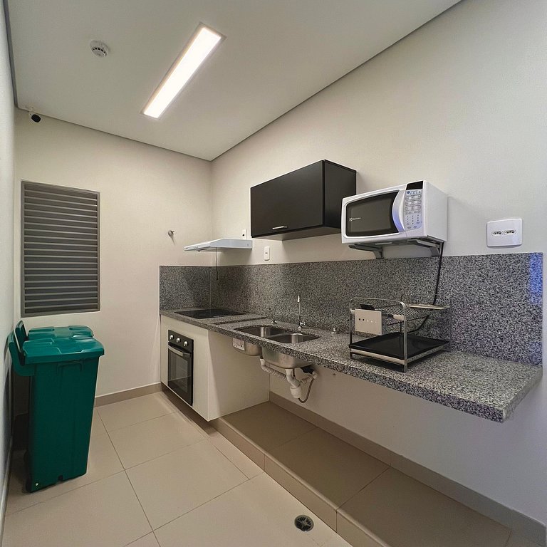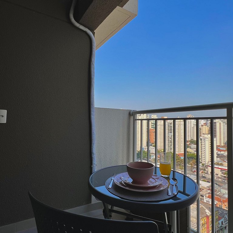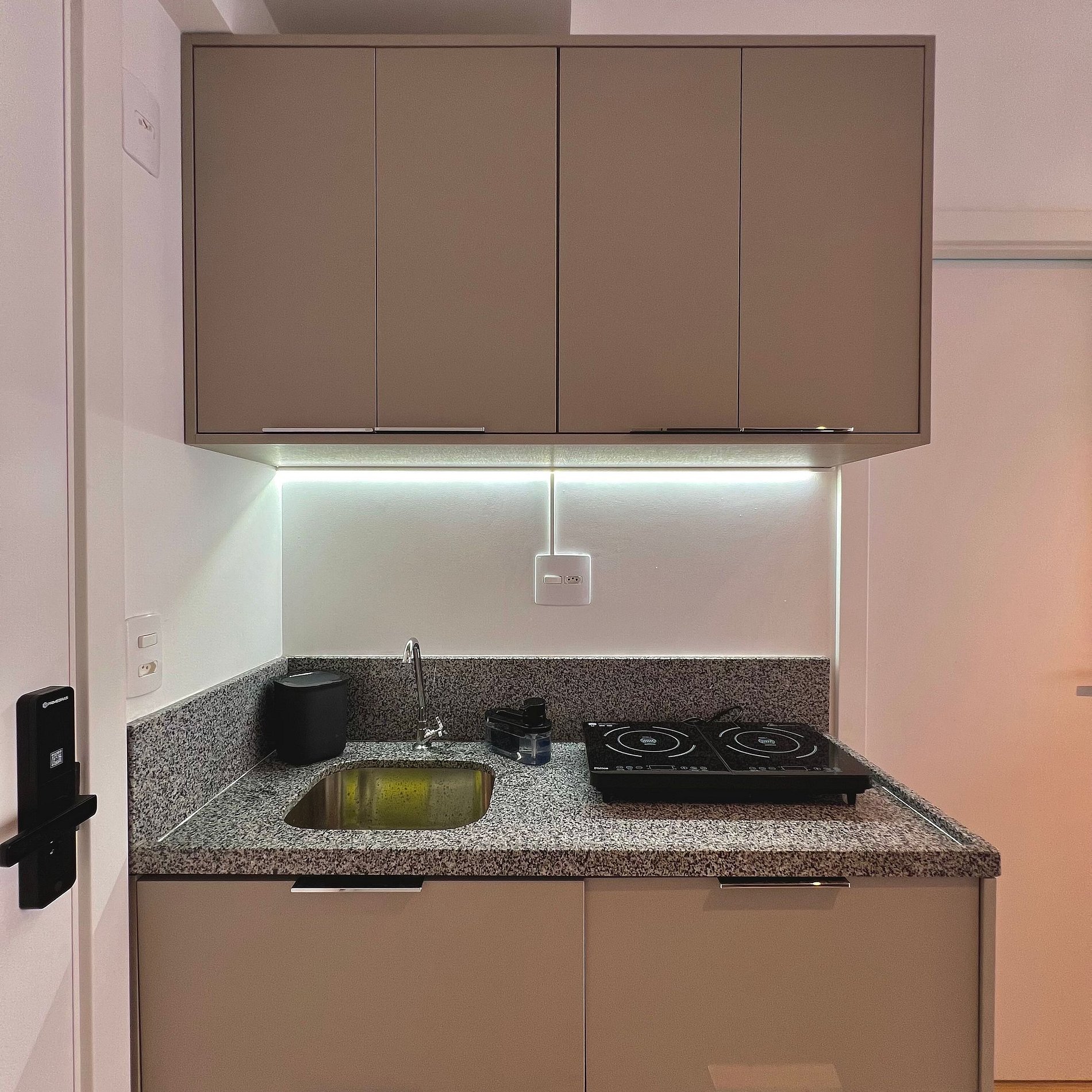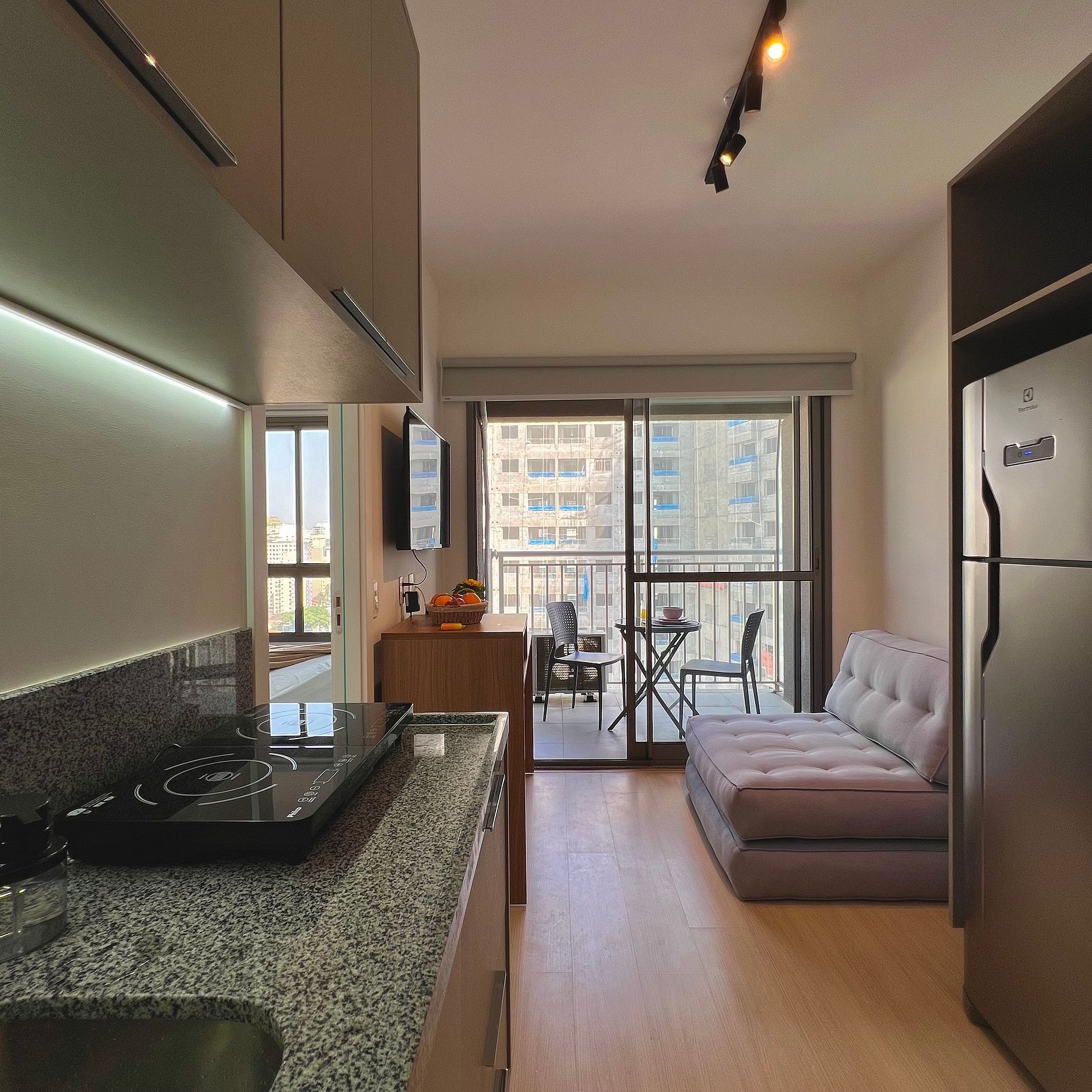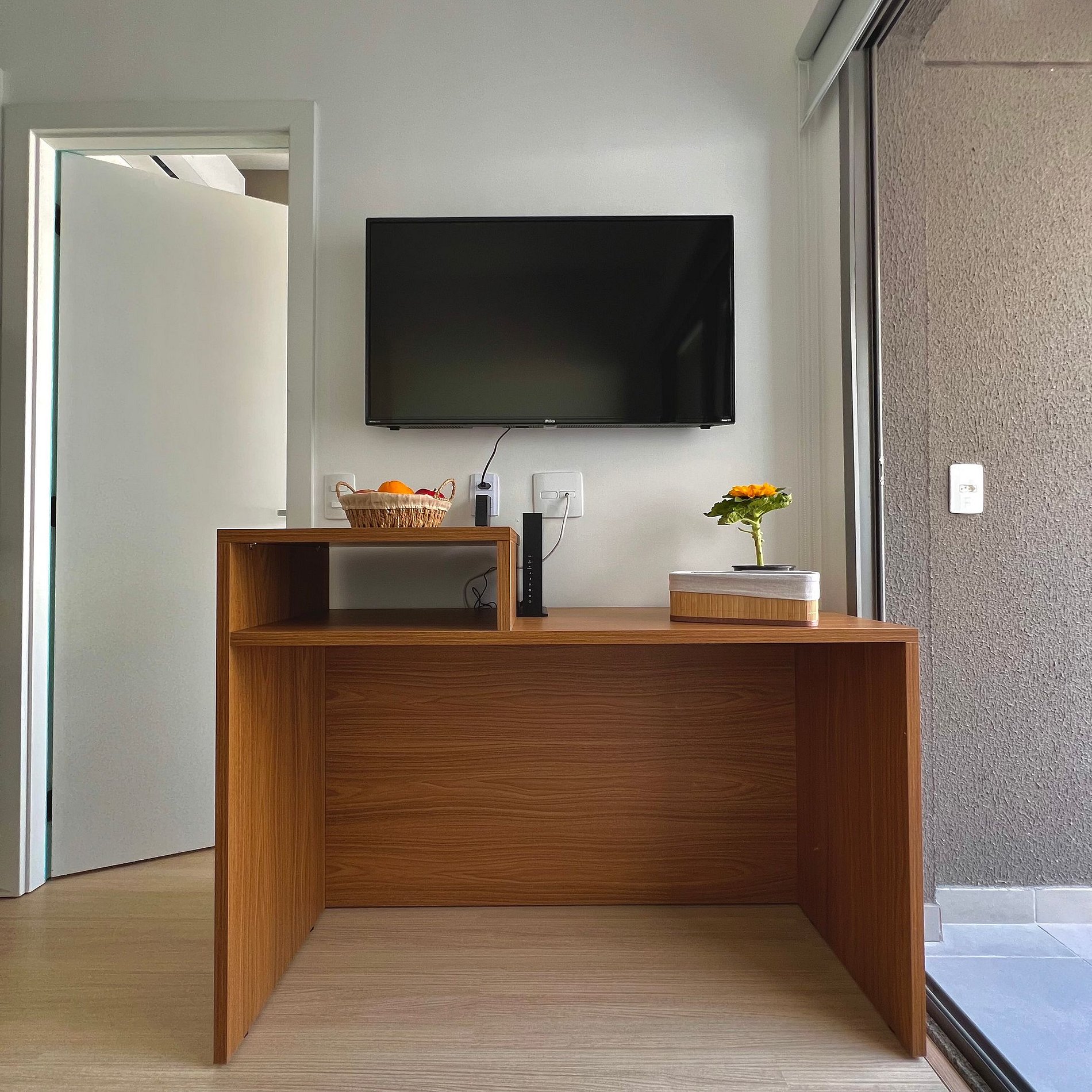 Aqui cada detalhe foi pensado para tornar sua estadia única: cozinha completa com fogão, micro-ondas, cafeteira, geladeira. O quarto com cama queen, sofá cama, blackout, enxoval completo, travesseiros e mantas/edredom para aqueles dias mais frios, wi-fi, ar-condicionado, TV Smart e um espaço para home office. O grande destaque é a varanda que garante iluminação natural, perfeita para tomar um café da manhã, ler um livro ou apreciar momentos tranquilos.