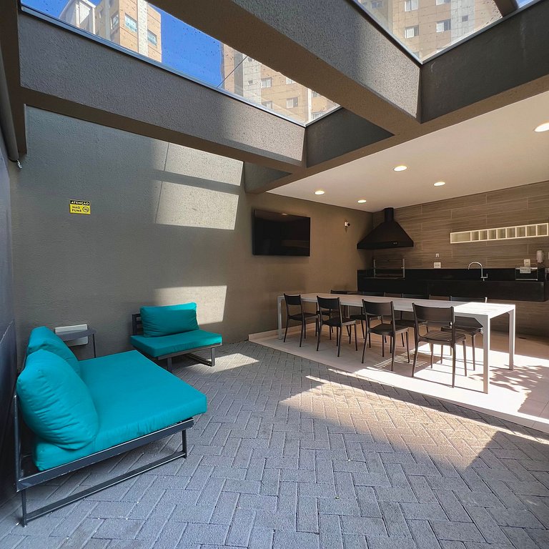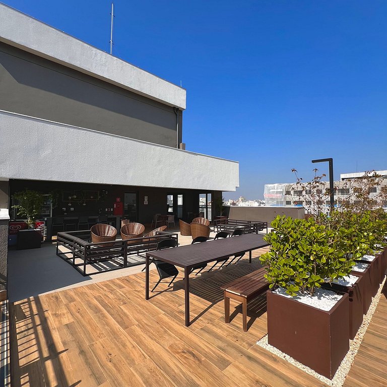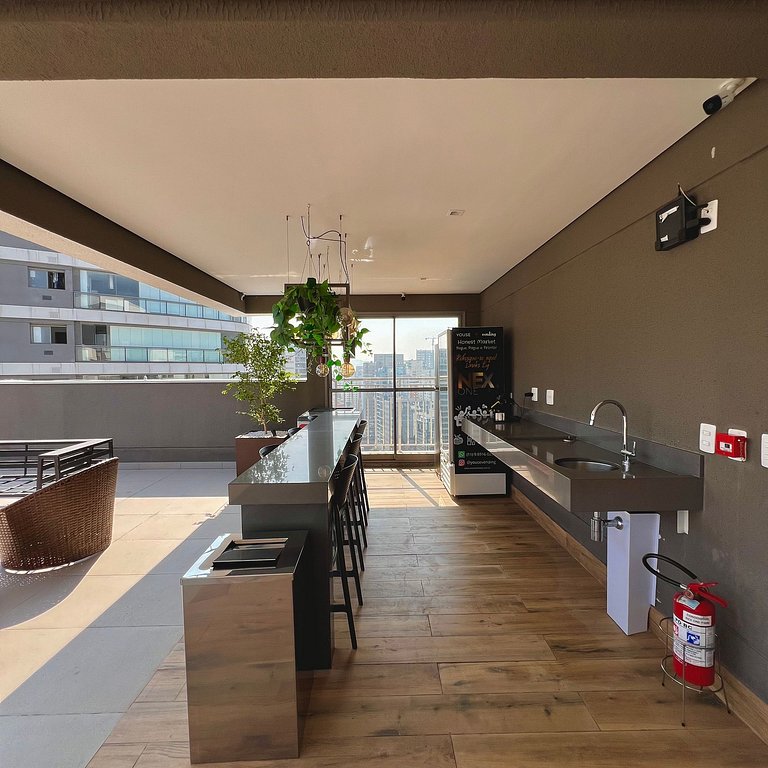 O prédio é completo e oferece toda a estrutura que você precisa: portaria 24h, elevadores, lavanderia coletiva, academia e coworking. Para os momentos de descanso, um rooftop com ofurô e um espaço garden no térreo, um verdadeiro convite ao relaxamento. Tudo isso em uma localização privilegiada, próximo ao Shopping JK Iguatemi com restaurantes e cafés tornando a experiência ainda mais especial.