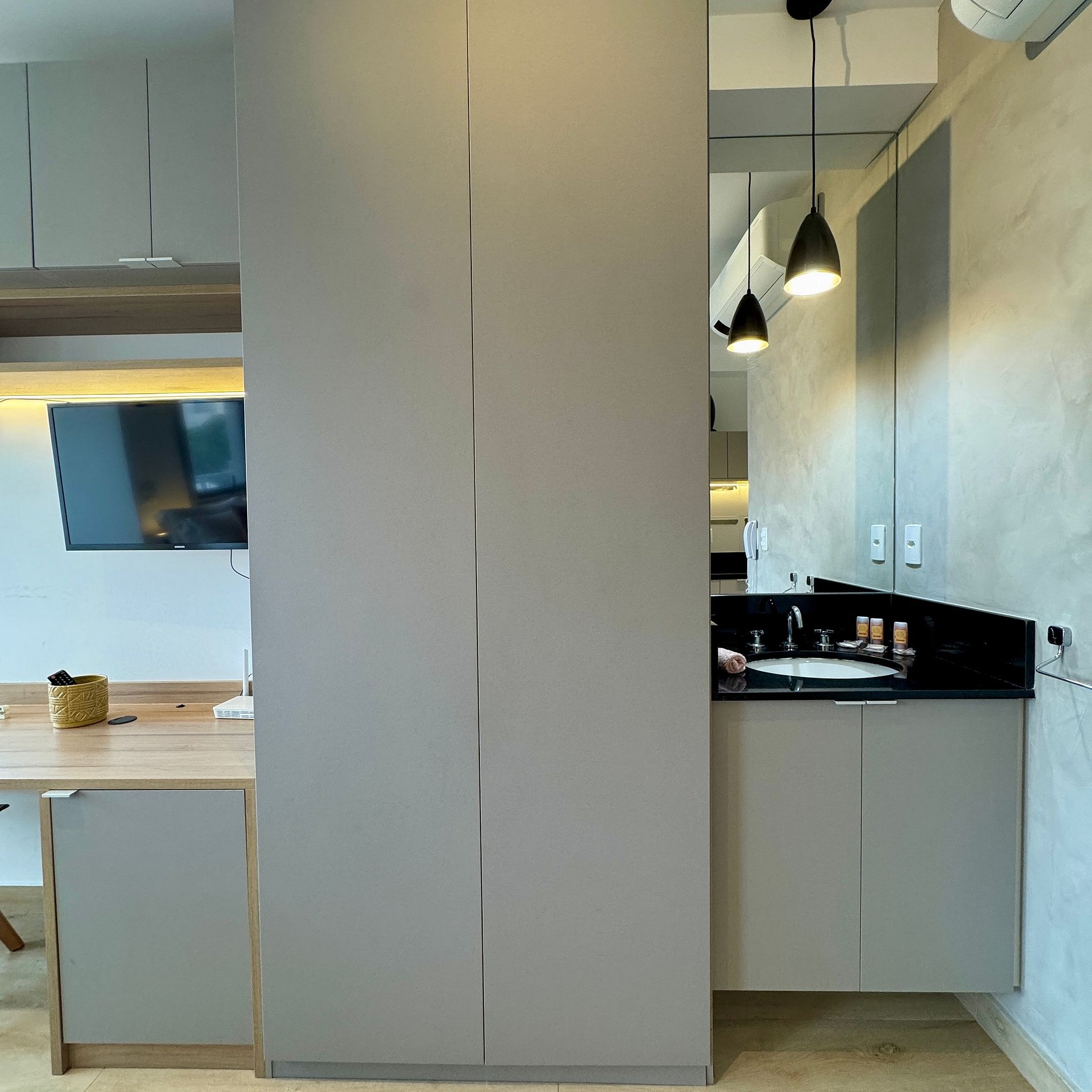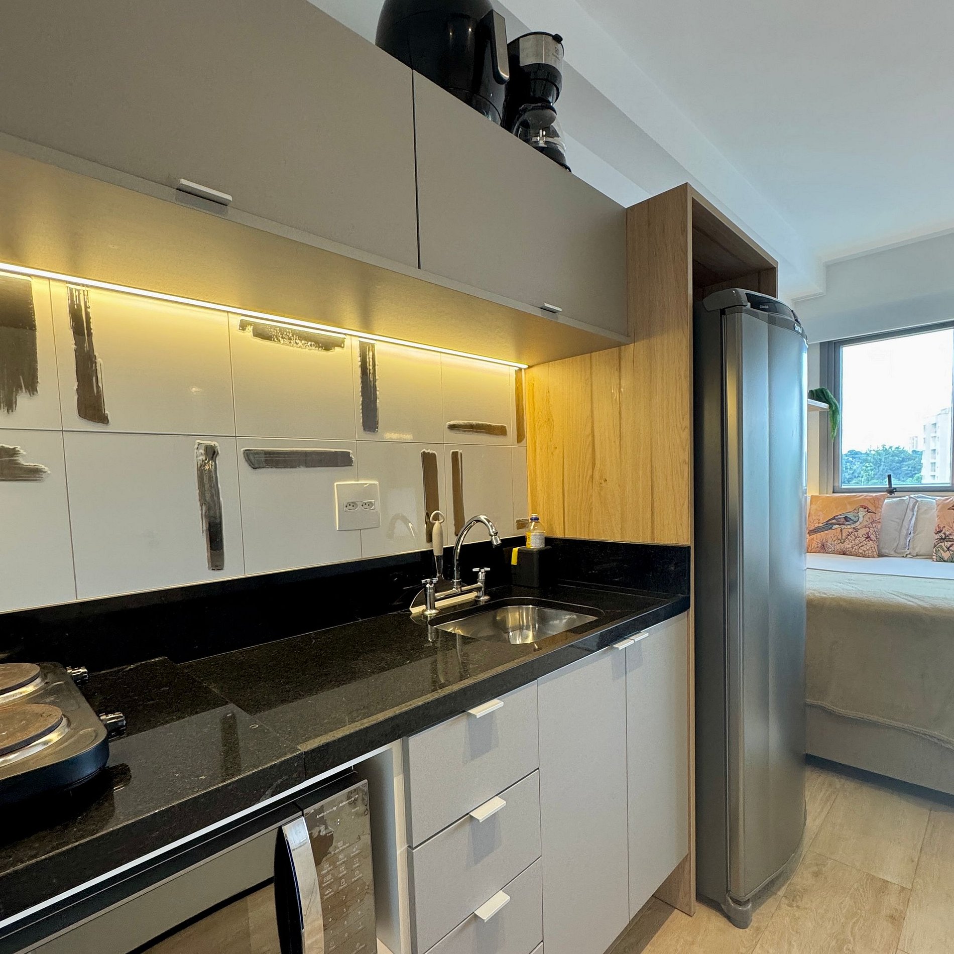 Aconchego e Praticidade no coração do Brooklin Proporcionamos a você uma estadia que une conforto e funcionalidade num estúdio compacto preparado cuidadosamente para que você se sinta em casa.