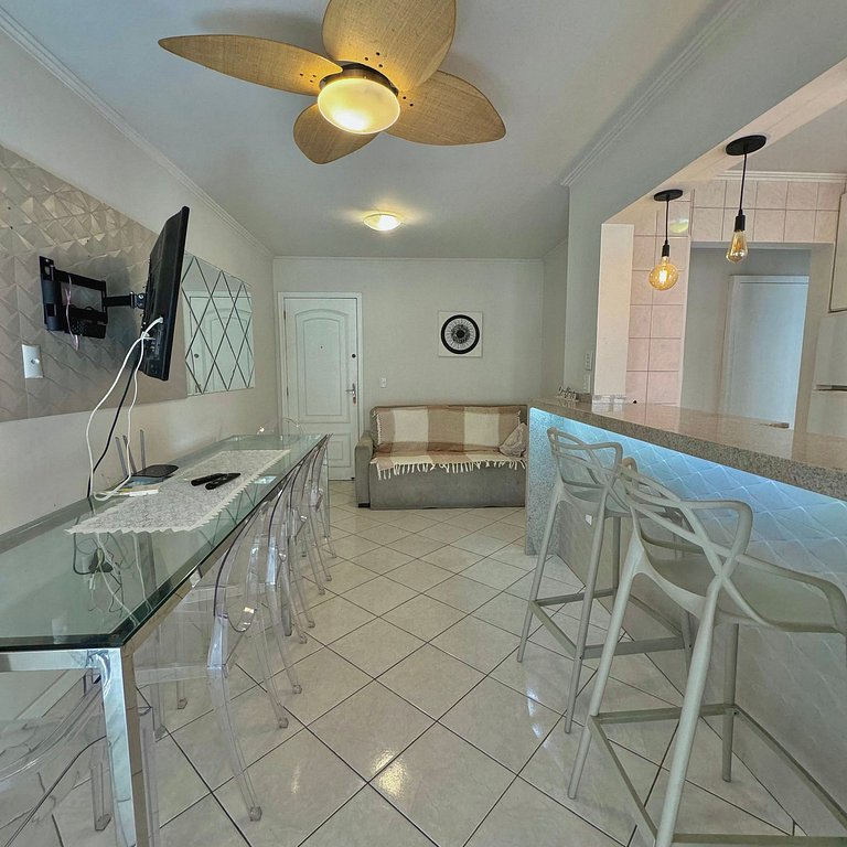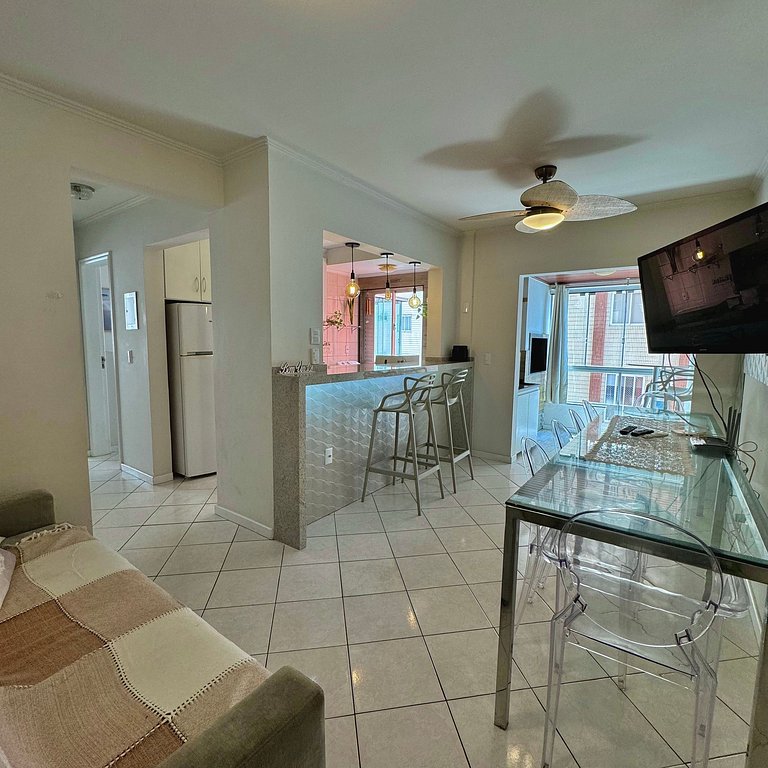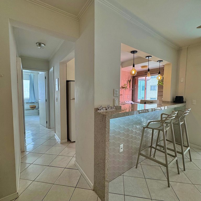 Esse apartamento em Balneário Camboriú é a definição de praticidade com conforto. A apenas duas quadras da Praia Central, ele é todo mobiliado e equipado para receber até 6 hóspedes com tranquilidade. São 2 quartos aconchegantes, 2 banheiros, sala integrada à cozinha com bancada e banquetas para reunir todo mundo, além de uma sacada com churrasqueira e vista agradável, perfeito tanto para uma viagem em família quanto entre amigos. O espaço foi pensado para estadias curtas e longas, trazendo aquele clima de praia com a estrutura que você precisa para se sentir em casa.