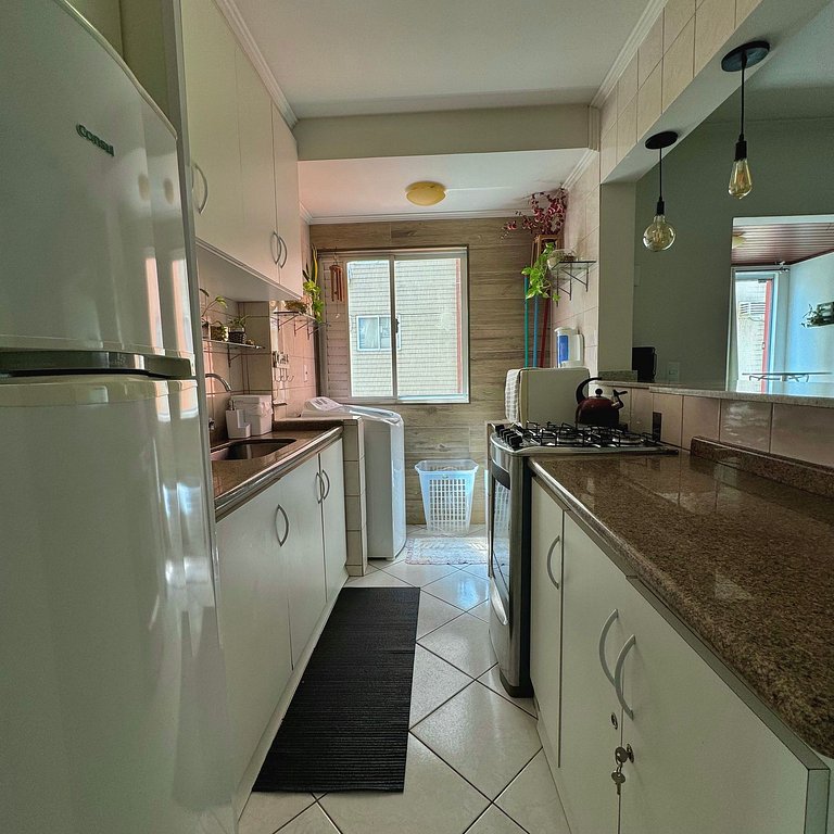 Aqui cada detalhe foi pensado para tornar sua estadia única: cozinha completa com fogão, cafeteira, geladeira, itens para churrasco, dois quartos, incluindo uma suíte, além de sofá-cama na sala, enxoval completo, travesseiros, mantas/edredom para aqueles dias mais frios, wi-fi, ar-condicionado, TV Smart e um espaço para home office.