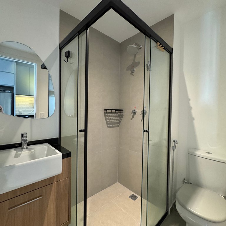 Contamos com portaria 24h, sistema de self check-in, elevadores e espaço de área comum, como: academia, piscina, lavanderia compartilhada e coworking.