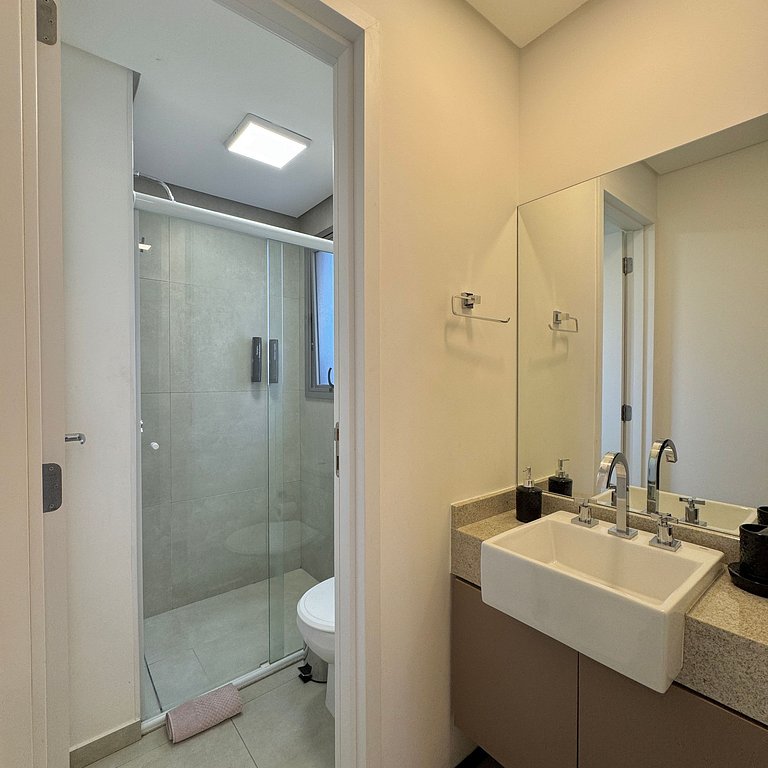 O prédio é completo e oferece toda a estrutura que você precisa: portaria digital 24h, sistema de self check-in, elevadores, lavanderia coletiva, academia e coworking. Para os momentos de descanso no rooftop, um verdadeiro convite ao relaxamento. Tudo isso em uma localização privilegiada, próximo a Shoppings com restaurantes e cafés tornando a experiência ainda mais especial.