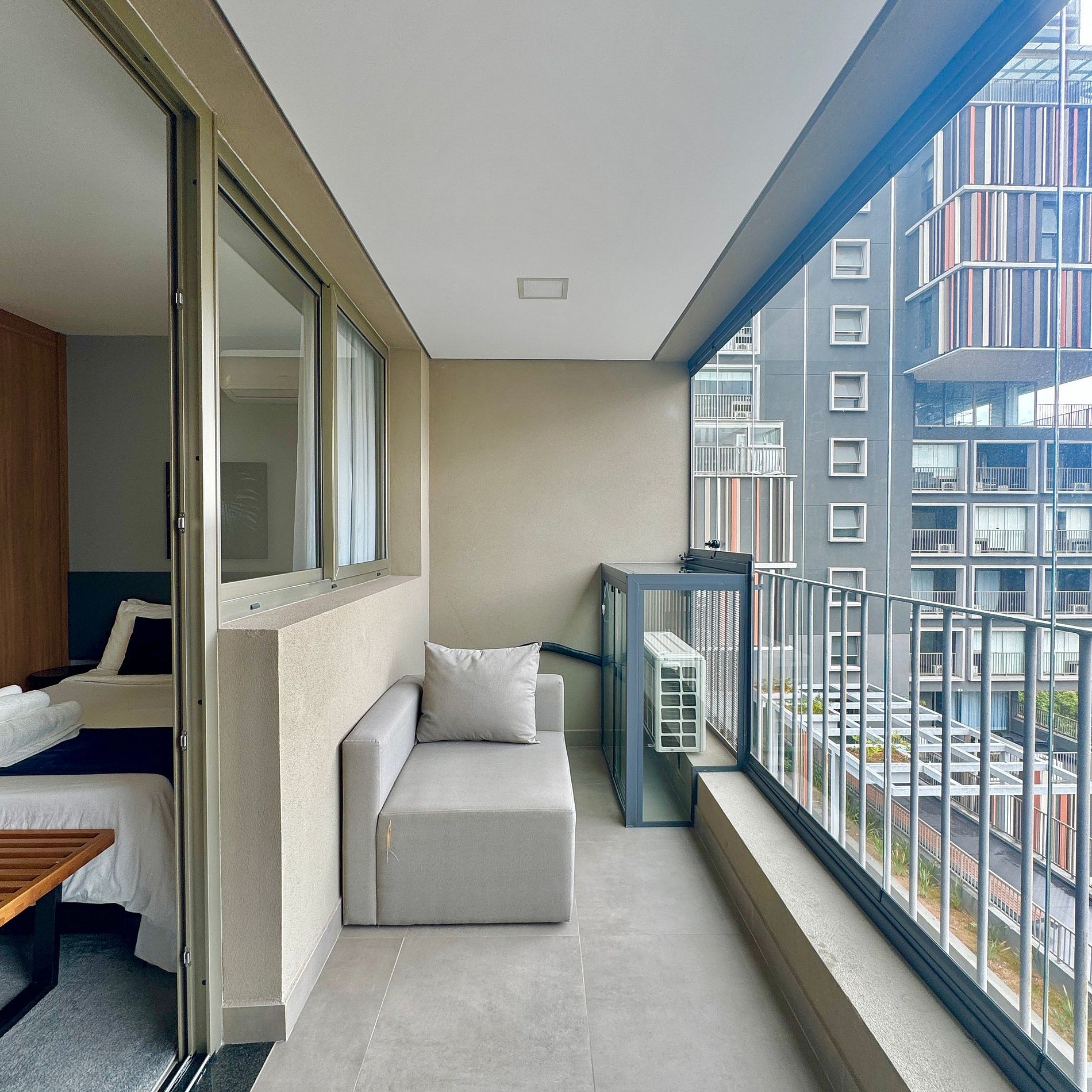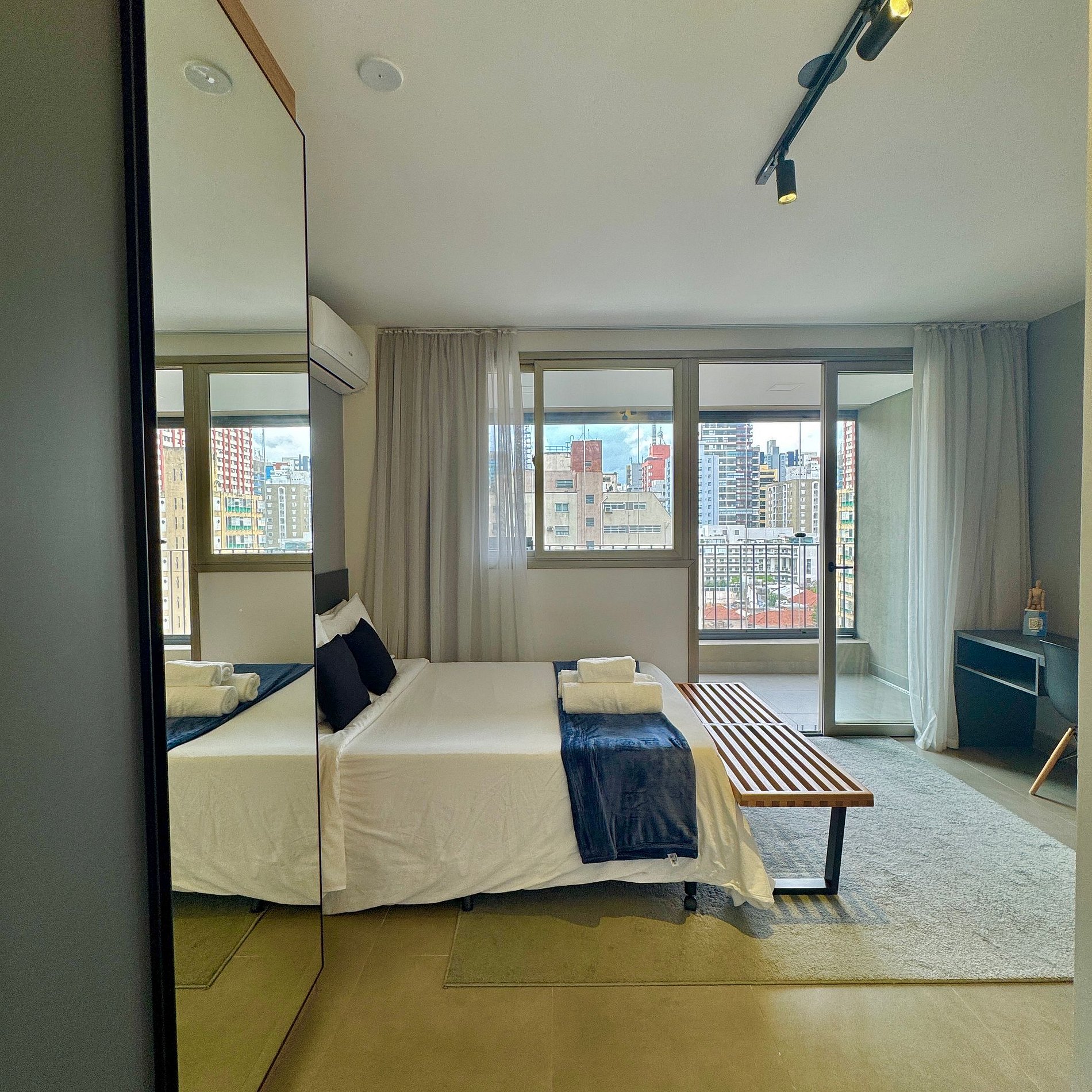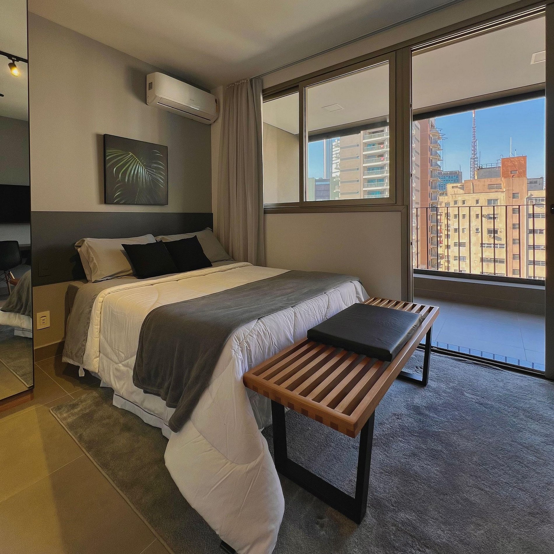 Aqui cada detalhe foi pensado para tornar sua estadia única: cozinha completa com fogão, micro-ondas, cafeteira e geladeira. O quarto com cama de casal, blackout, wi-fi, ar-condicionado, vaga de garagem (com manobrista), TV Smart e um espaço para home office. O grande destaque é a sacada fechada com vista marcante para o bairro Jardins que garante luminosidade e menos ruído durante o dia e a noite, perfeita para trabalhar, relaxar, ler um livro ou simplesmente apreciar momentos tranquilos.