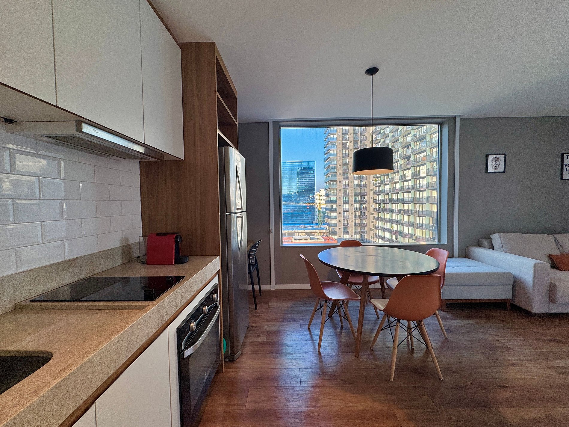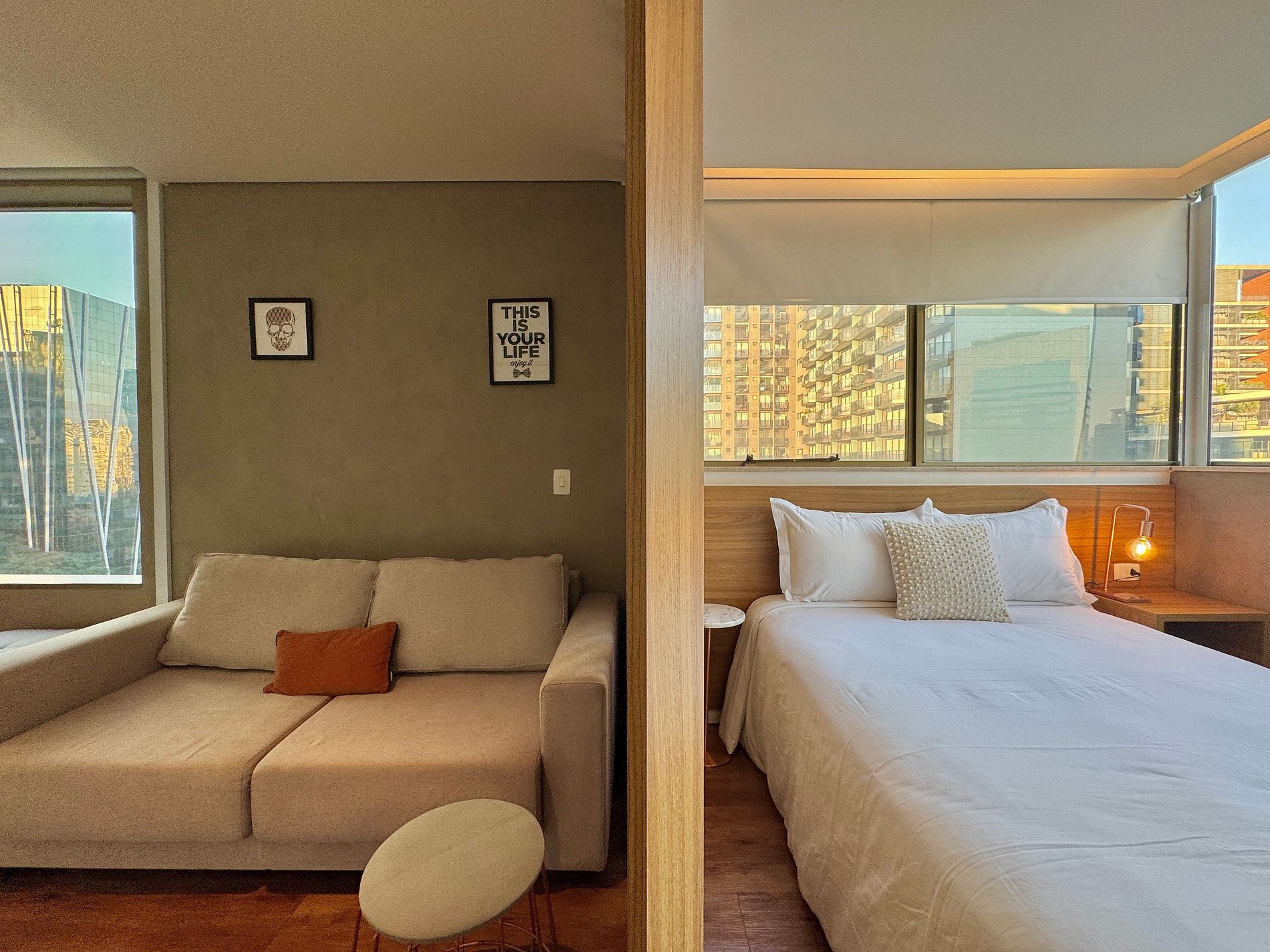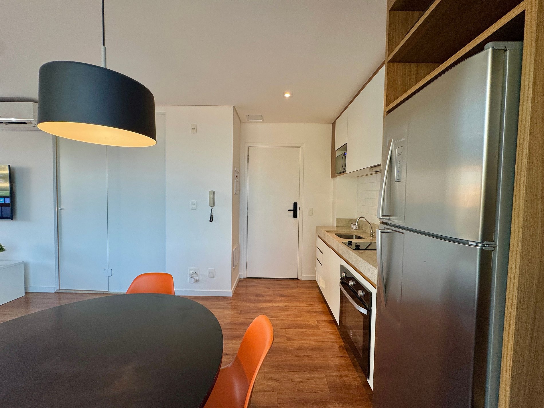 Aqui cada detalhe foi pensado para tornar sua estadia única: cozinha completa com fogão, micro-ondas, forno, cafeteira, geladeira, quarto com cama de casal,sofá, blackout, enxoval completo, travesseiros, mantas/edredom para aqueles dias mais frios, wi-fi, ar-condicionado, TV Smart, espaço para home office e vaga de garagem. O grande destaque do estúdio é sua amplitude e uma moldura na área da sala que capta a vista do bairro e garante iluminação natural. Ideal para quem vem a trabalho ou a passeio devido à sua excelente localização.