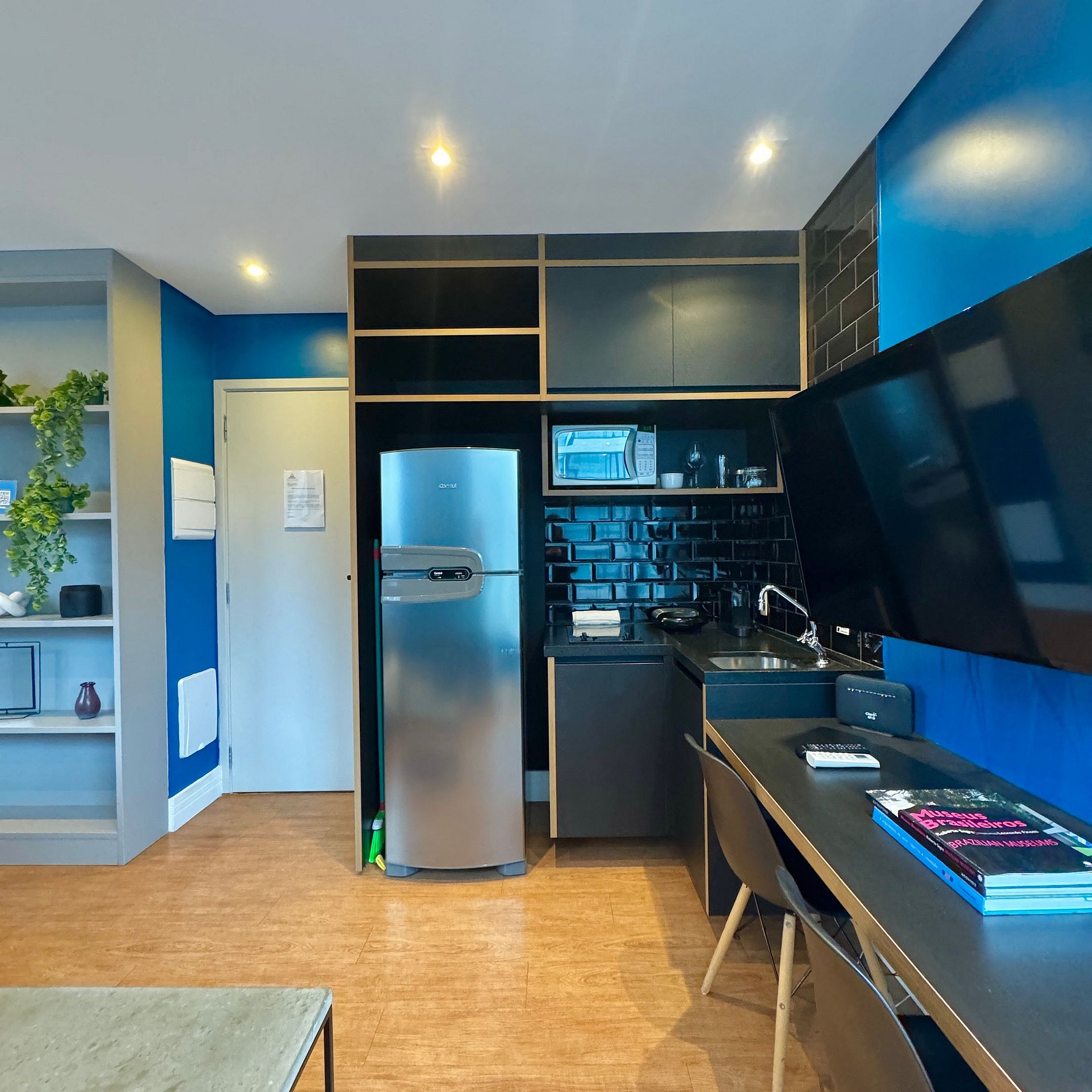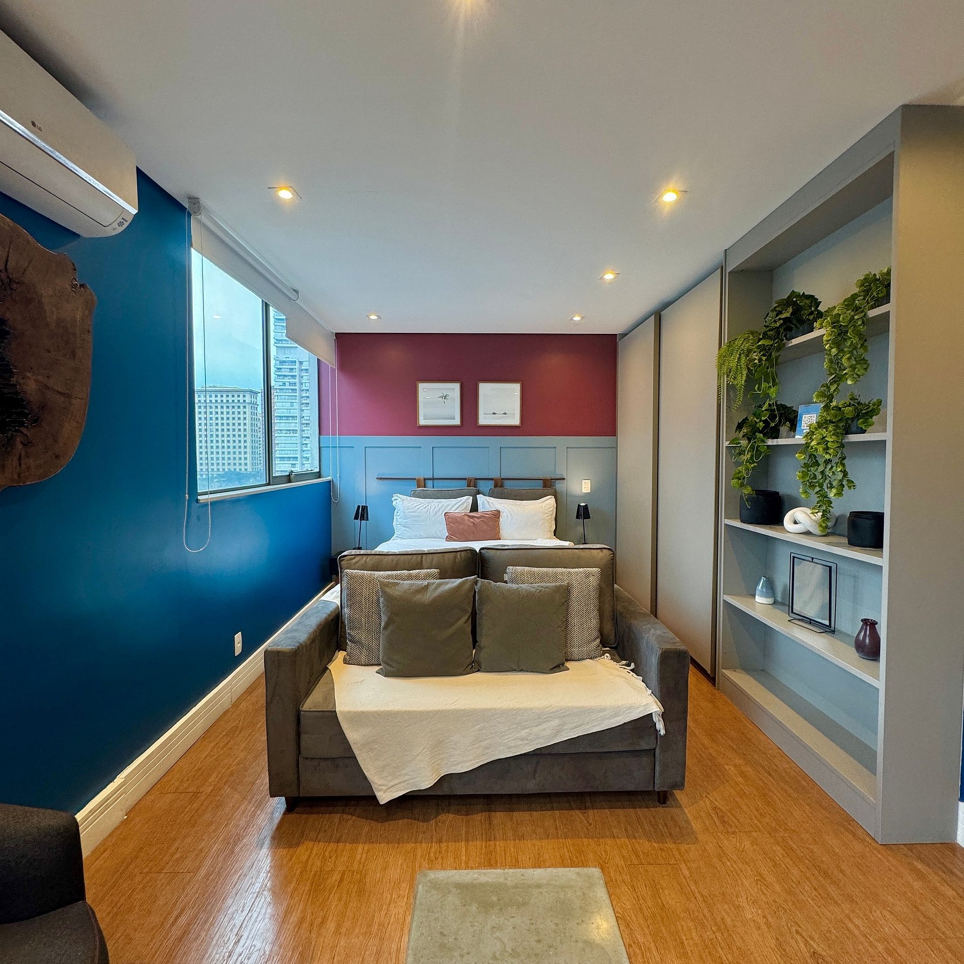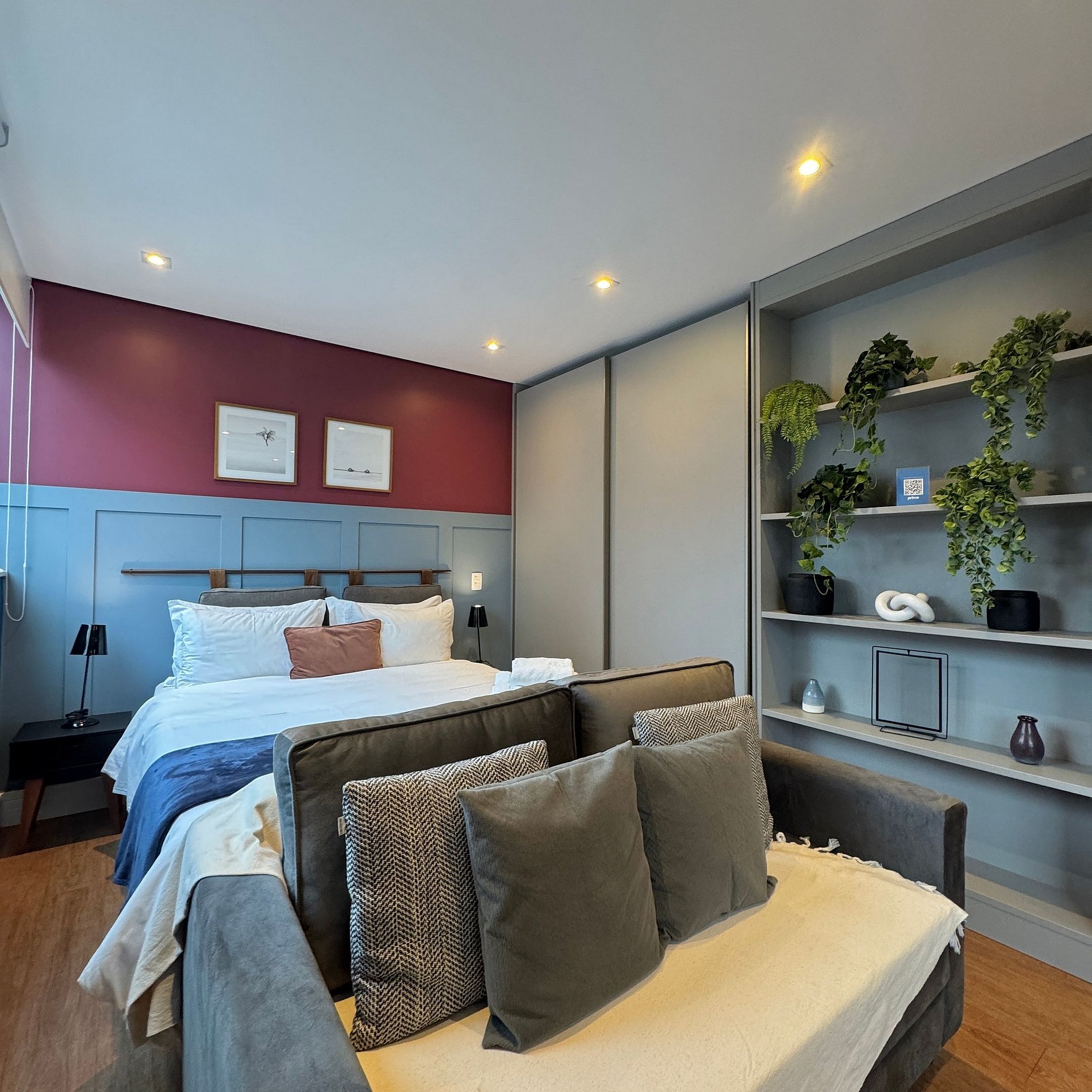Aqui cada detalhe foi pensado para tornar sua estadia única: cozinha completa com fogão, micro-ondas, cafeteira, geladeira, quarto com cama de casal, sofá cama, blackout, enxoval completo, travesseiros, mantas/edredom para aqueles dias mais frios, wi-fi, ar-condicionado, TV Smart, espaço para home office e vaga de garagem. Ideal para quem vem a trabalho ou a passeio devido à sua excelente localização.