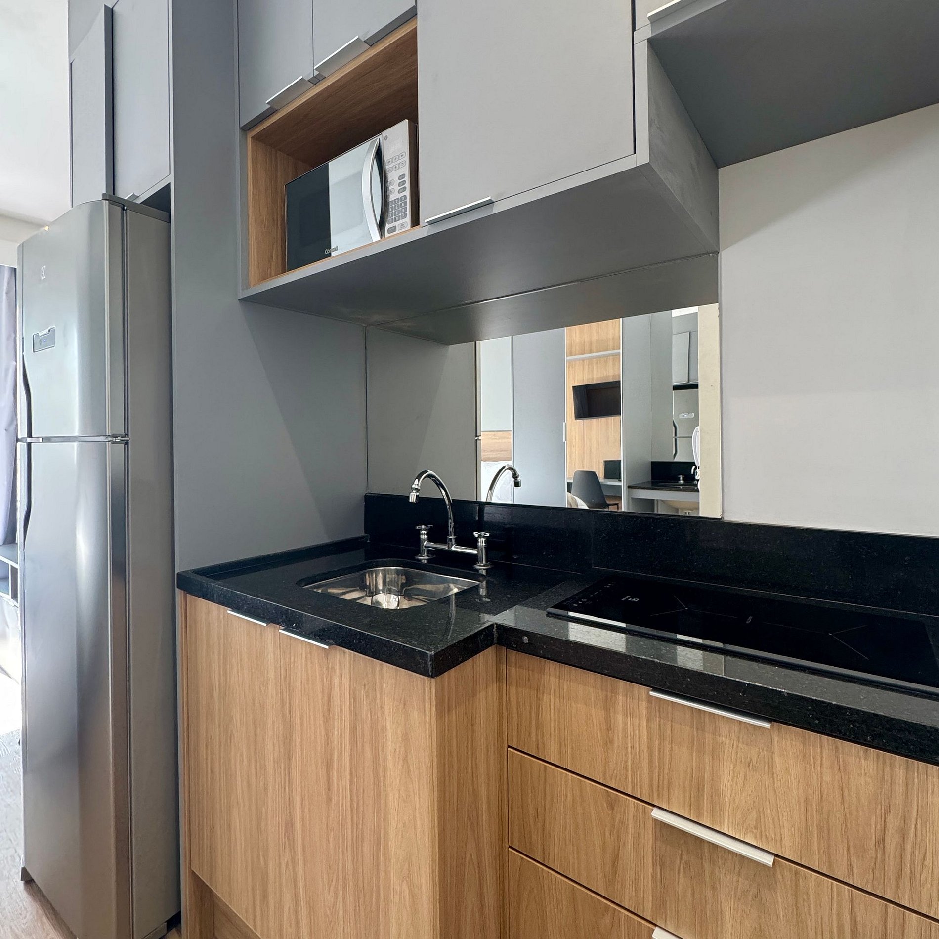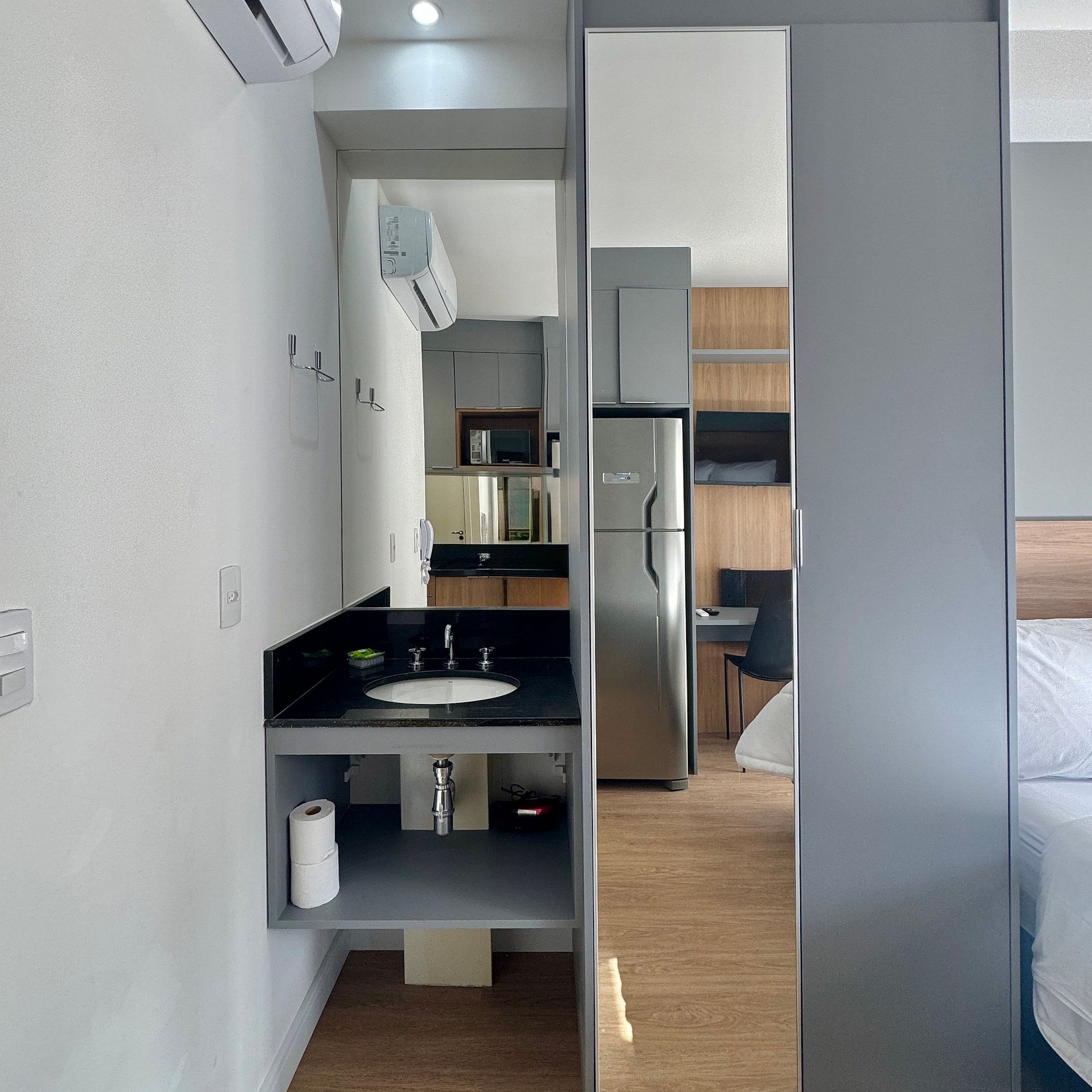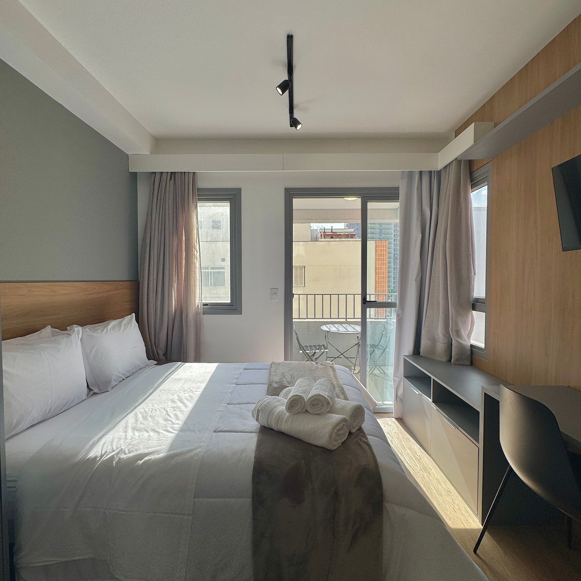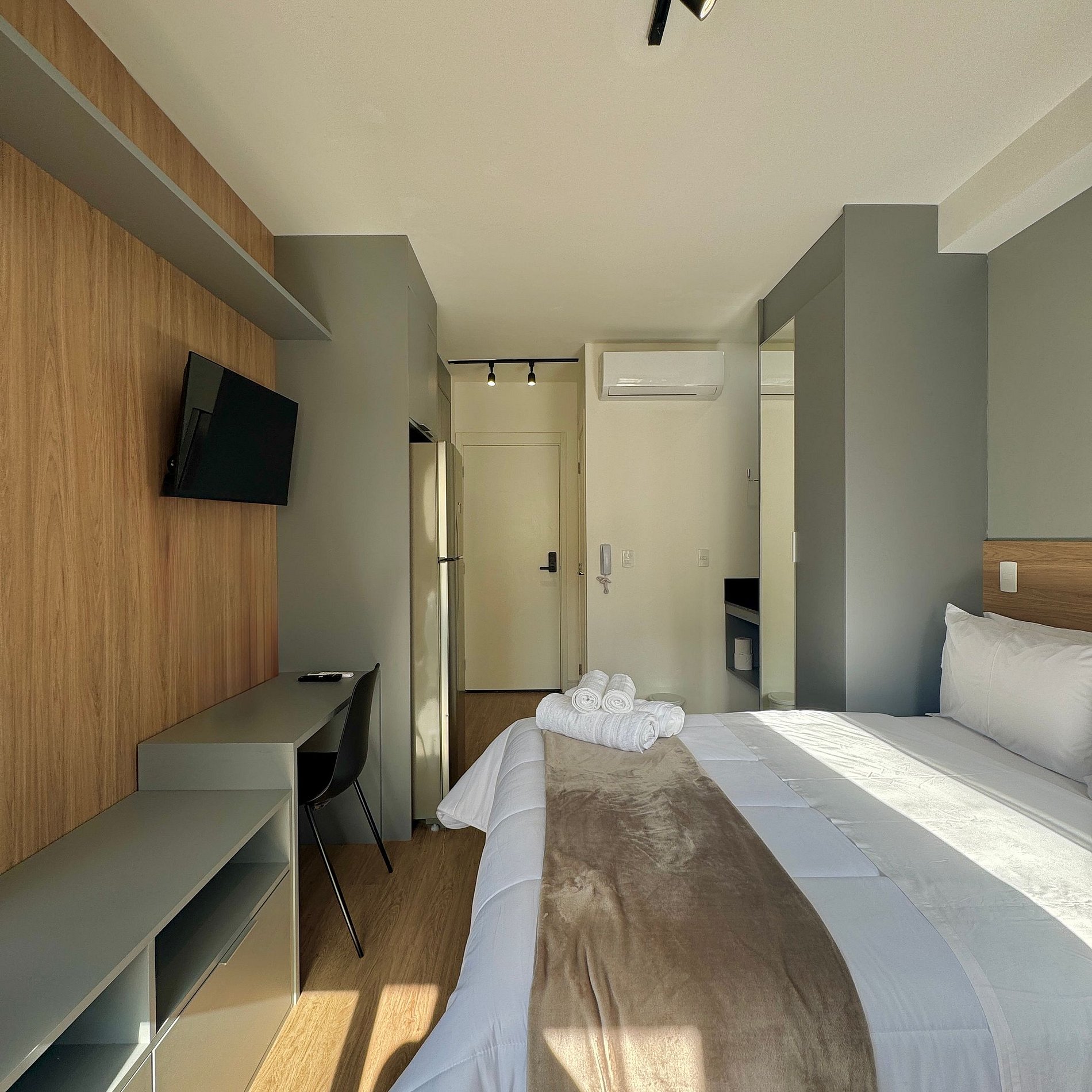 Proporcionamos a você uma estadia que une conforto e funcionalidade num estúdio compacto preparado cuidadosamente para que você se sinta em casa.