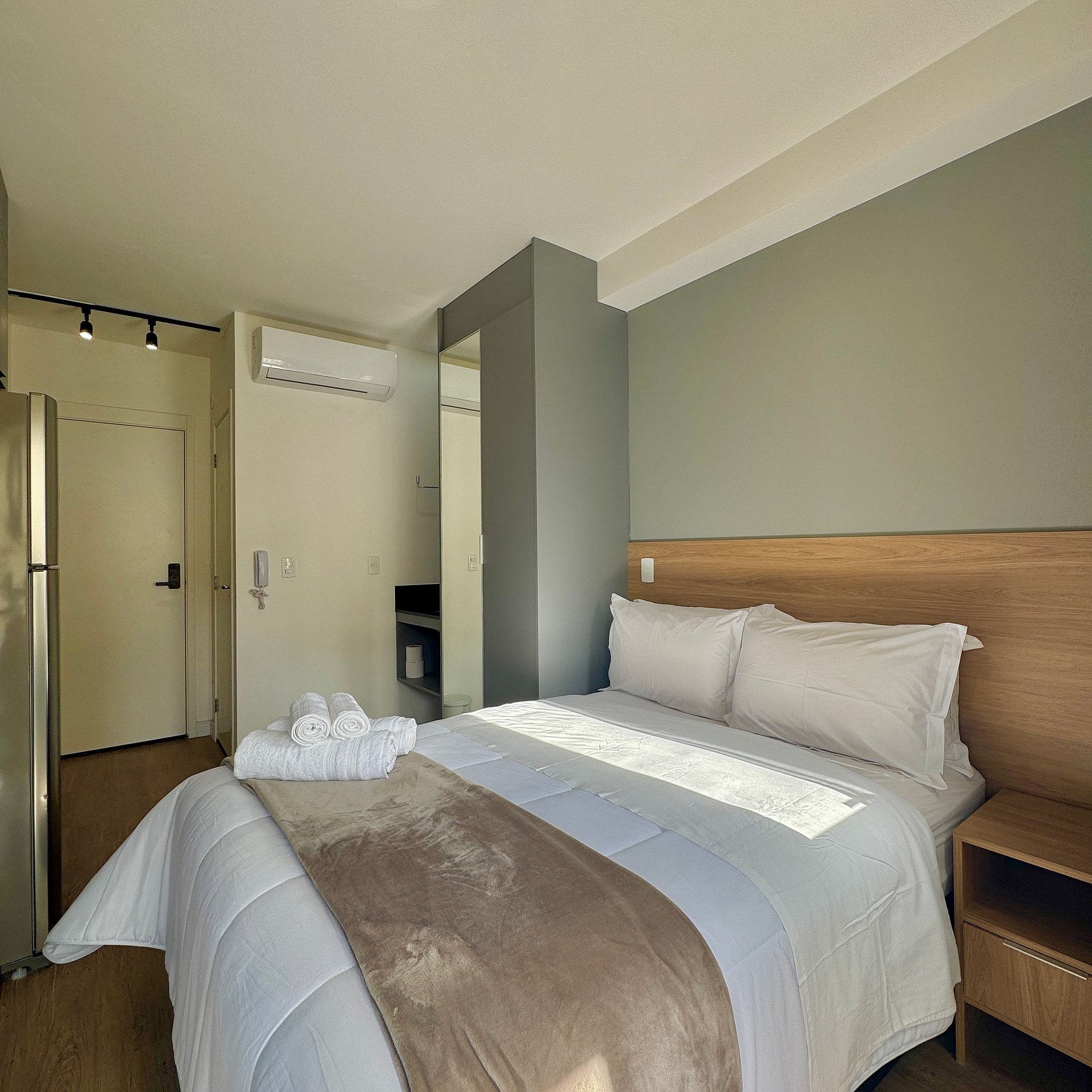 Proporcionamos a você uma estadia que une conforto e funcionalidade num estúdio compacto preparado cuidadosamente para que você se sinta em casa.