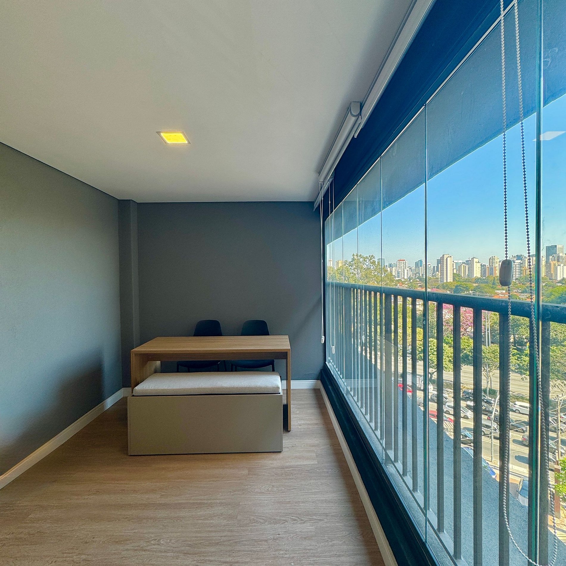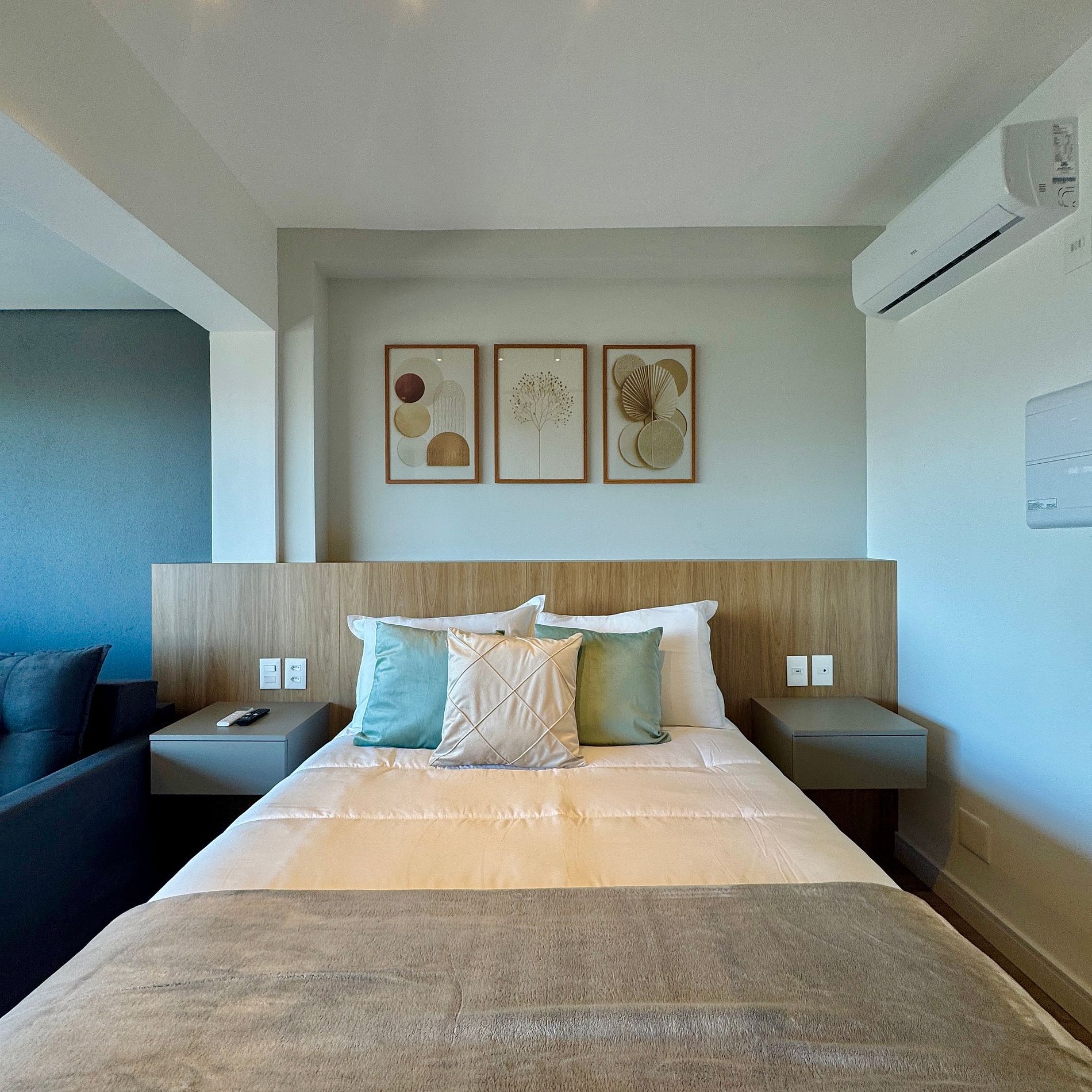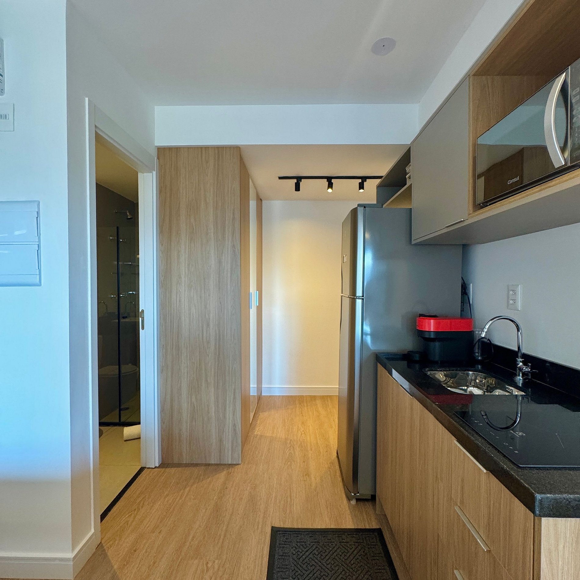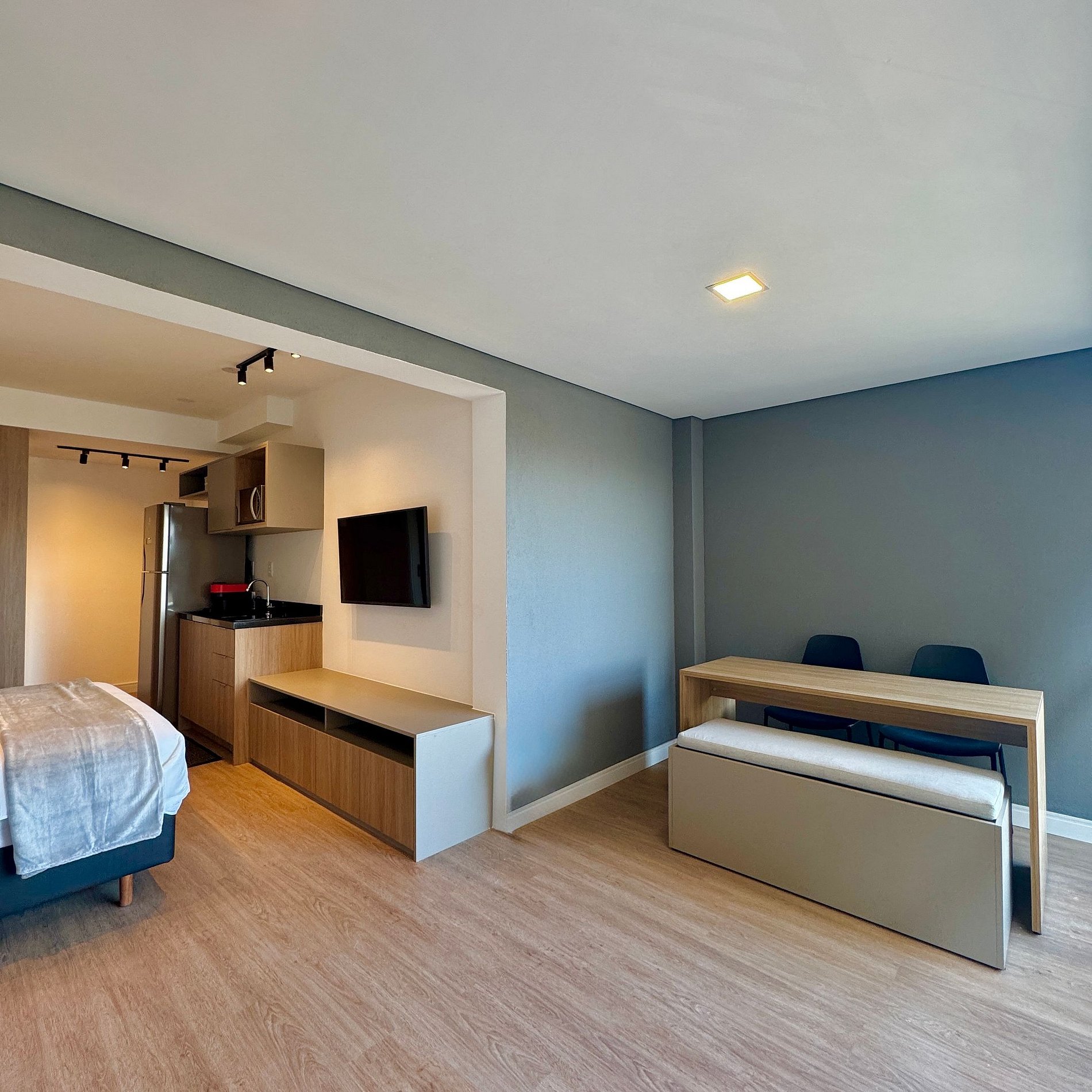Aqui cada detalhe foi pensado para tornar sua estadia única: cozinha completa com fogão, micro-ondas, cafeteira e geladeira. O quarto com cama casal além de um sofá cama, blackout, wi-fi, ar-condicionado, TV Smart e um espaço para home office. O grande destaque é a sacada integrada que garante maior iluminação natural e espaço. O studio é perfeito para quem vem a trabalho ou a passeio, devido à excelente localização e facilidade de locomoção.