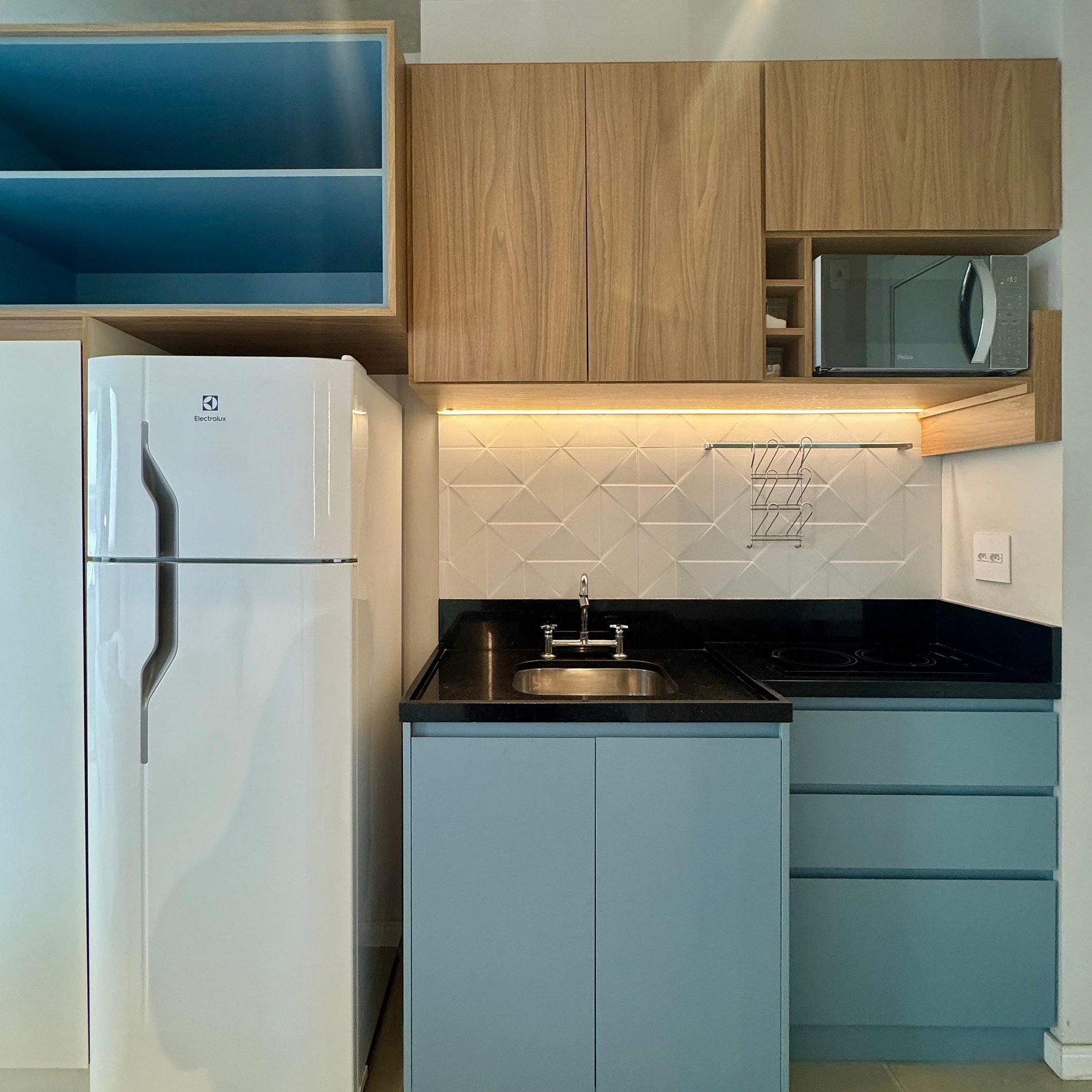 Aqui cada detalhe foi pensado para tornar sua estadia única: Cozinha completa com fogão, mobília, micro-ondas, cafeteira e geladeira, quarto com cama de casal, persiana com blackout, enxoval completo, travesseiros e mantas/edredom para aqueles dias mais frios, banheiro com chuveiro aquecido a gás, secador de cabelos, ar-condicionado, TV Smart, wi-fi e uma varanda charmosa, ideal para desfrutar do café da manhã ou relaxar no fim da tarde. O grande destaque é a localização privilegiada e as áreas de lazer.