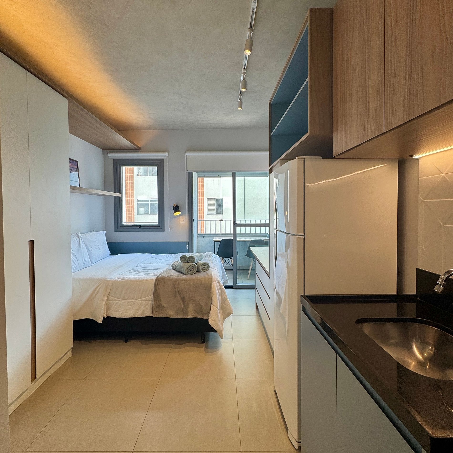 Proporcionamos a você uma estadia que une conforto e funcionalidade num estúdio compacto preparado cuidadosamente para que você se sinta em casa.